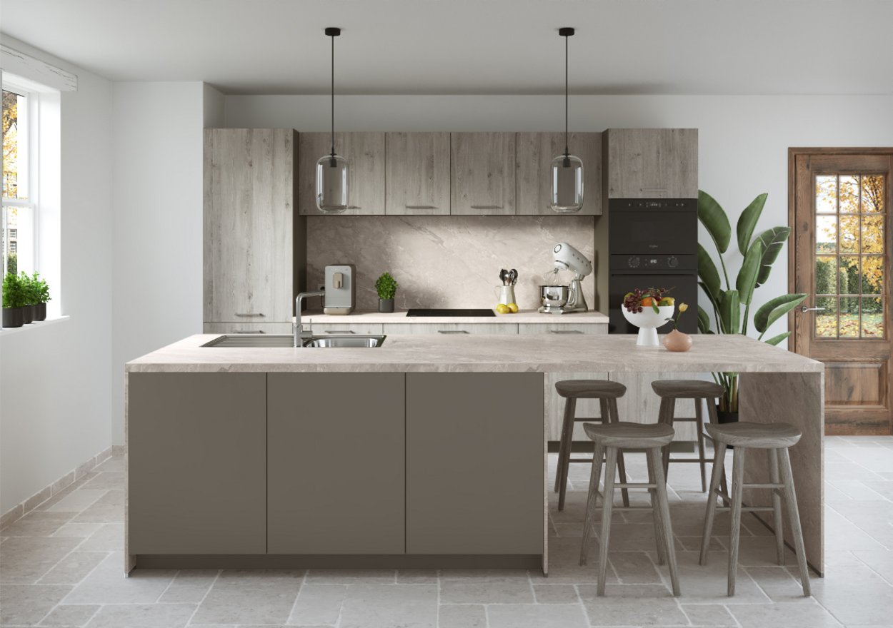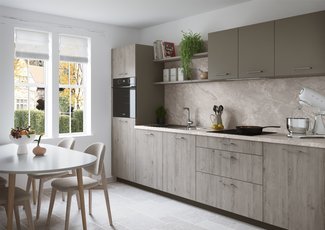 La Moda tradición reinventa el tiempo que pasas en la cocina transformándolo en momentos de auténtico disfrute. Con todo lo esencial a mano: frigorífico, zona de cocción y zona de lavado, podrás cocinar con total simplicidad; además cuenta con un espacio específico para pequeños electrodomésticos que deja libre la encimera. La barra incorporada invita a hacer confidencias y a charlar. ¡Nuestros asesores te esperan en nuestras tiendas para crear la cocina de tus sueños, totalmente personalizada a tu gust