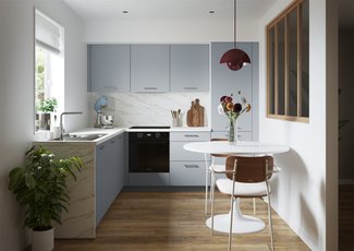 ¡Entrar en la cocina Dolce Esencial es empezar el día con buen pie! Su azul pastel y su luminosidad destilan buen humor.