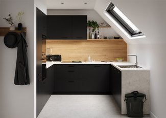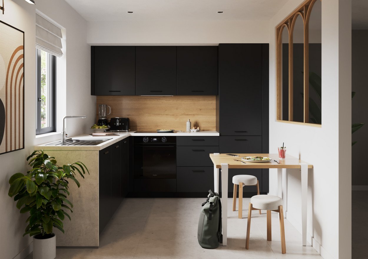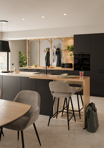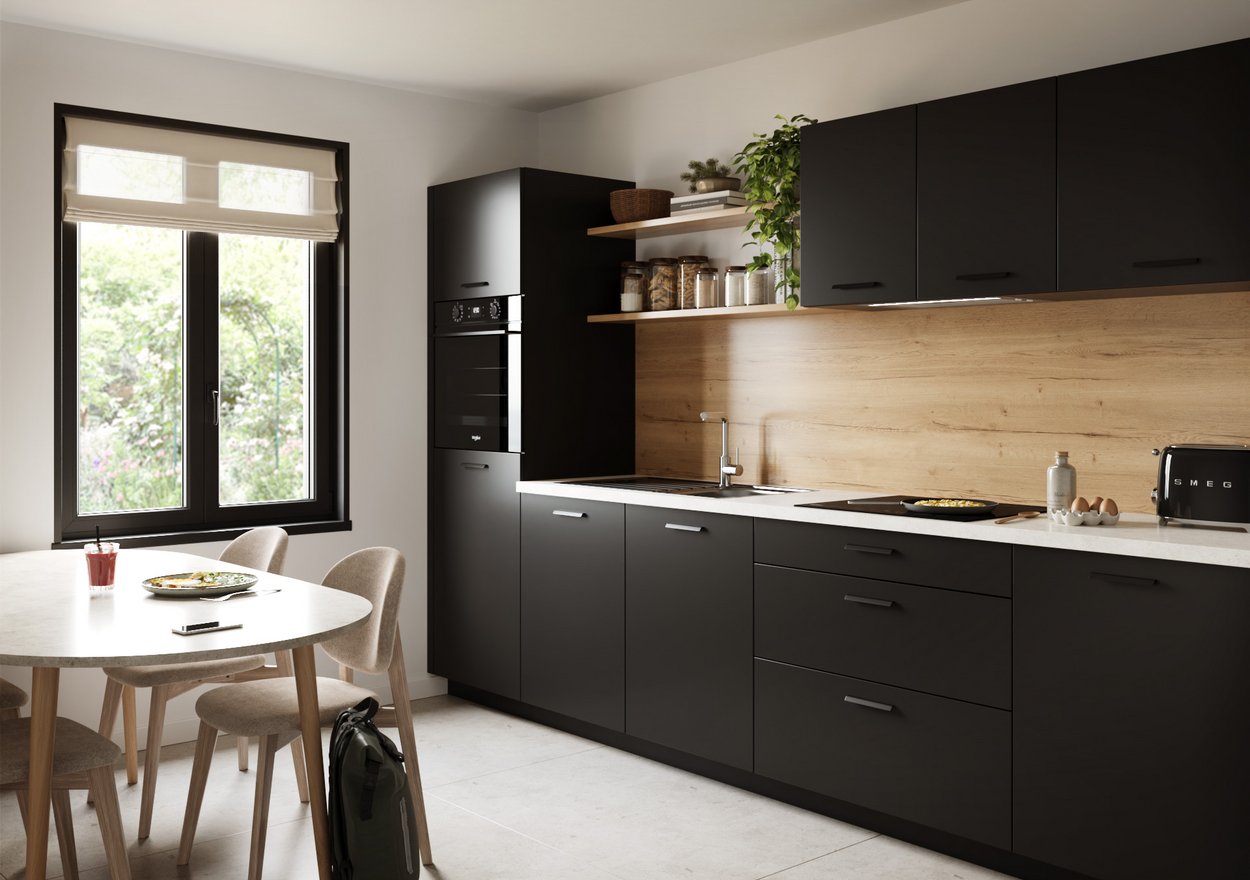 Pensée pour ceux qui vivent intensément chaque moment, la cuisine Dolce Chic incarne le parfait équilibre entre design affirmé et fonctionnalité du quotidien. Avec ses façades noires, profondes et raffinées, elle s’intègre harmonieusement dans les intérieurs modernes et épurés, offrant un espace aussi esthétique que chaleureux. Au centre de la pièce, l’îlot est la pièce maîtresse : on y prépare le dîner, on y dépose des courses, on y partage un café entre deux visioconférences.