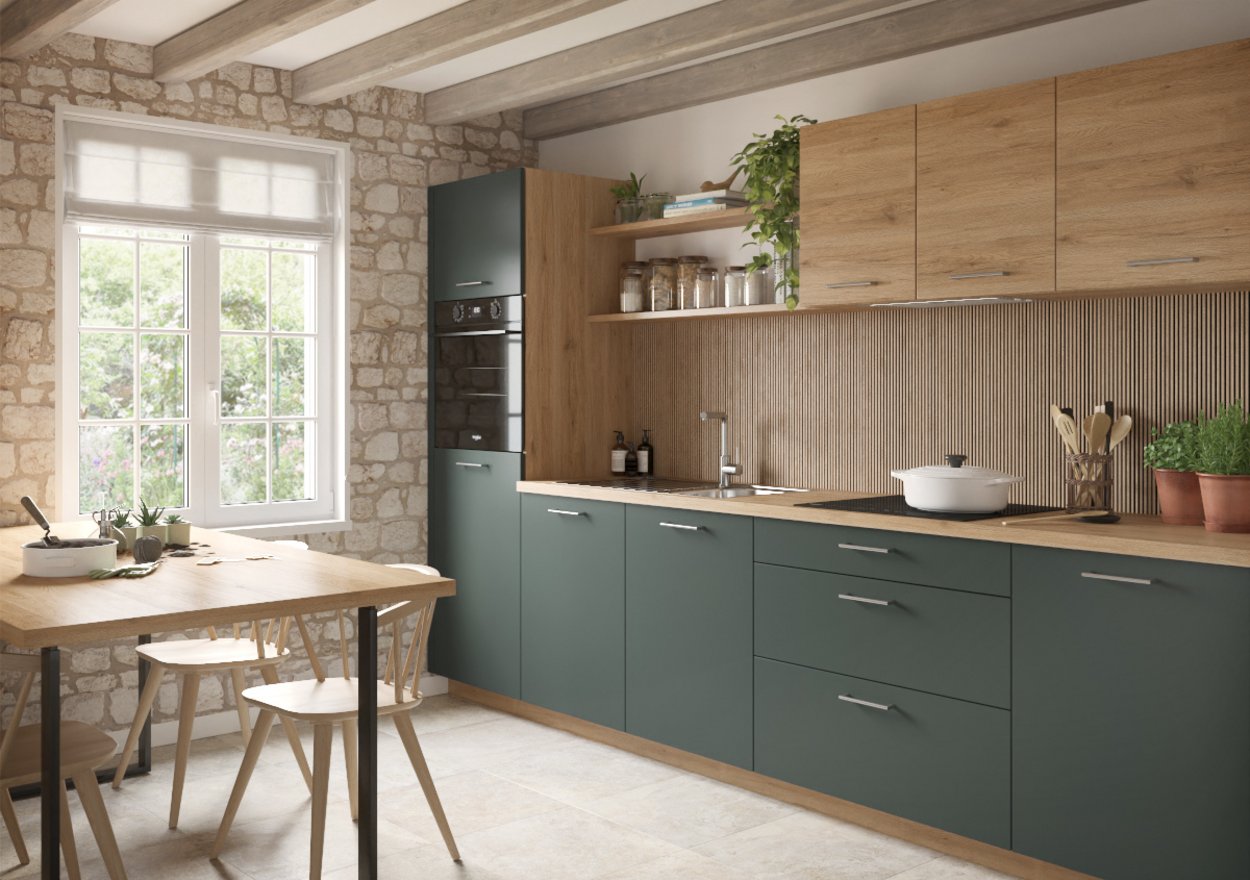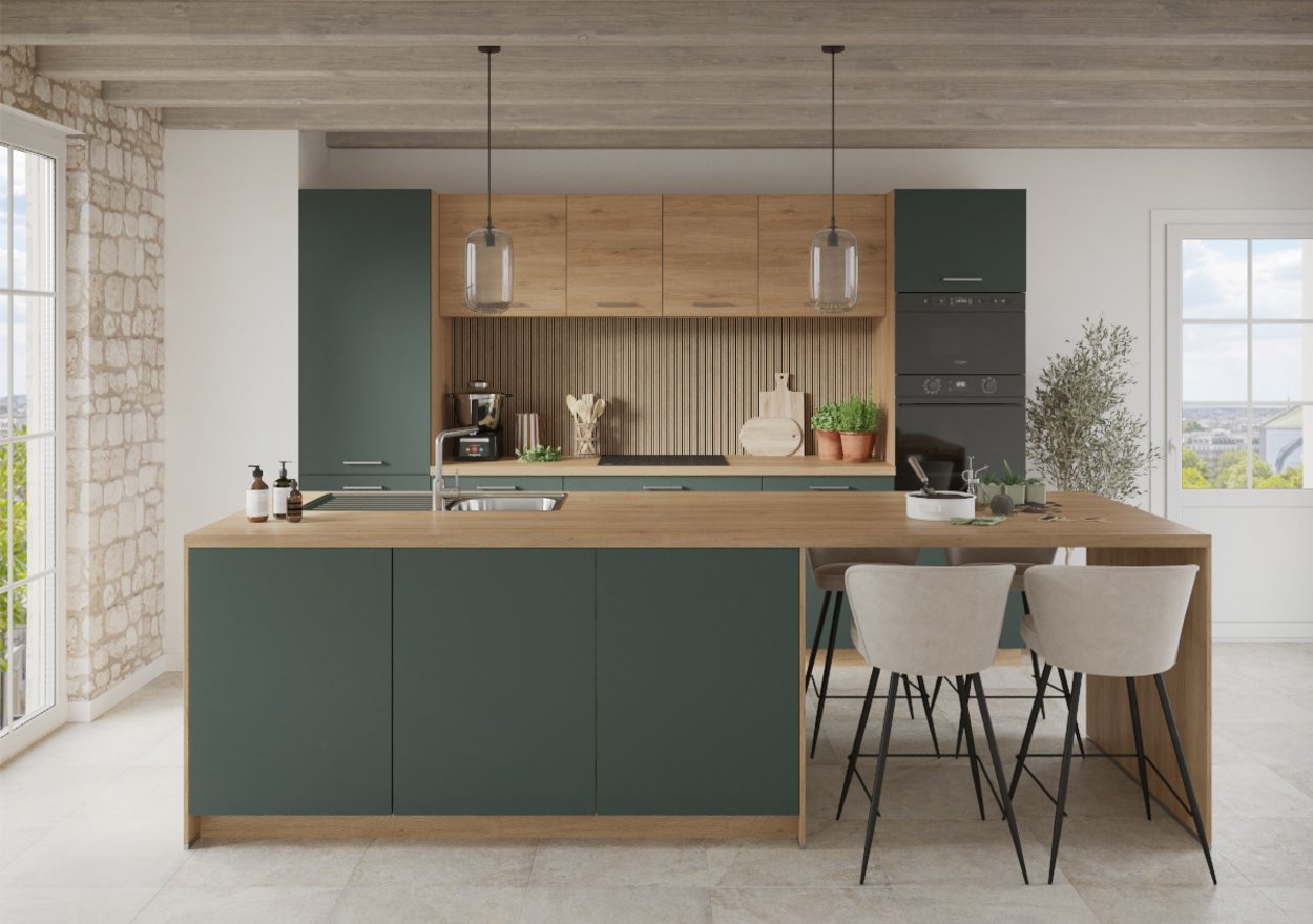 ¿Quieres una cocina donde cada miembro de la familia tenga su sitio y donde pasar momentos que se convertirán en preciosos recuerdos? ¡Eso está hecho con el modelo Velvet! Esta cocina, especialmente pensada para familias numerosas, te ofrece un espacio de vida práctico y acogedor.