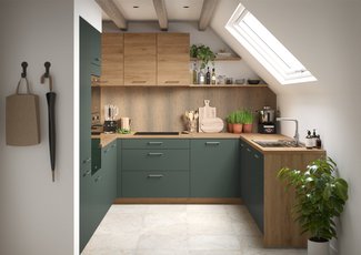La cocina Velvet está equipada con todos los electrodomésticos necesarios para preparar deliciosas comidas. Su distribución en L y los numerosos armarios hacen que sea más fácil tenerlo organizado con estilo y eficacia. ¡Con el modelo Velvet da gusto estar en la cocina!