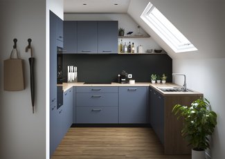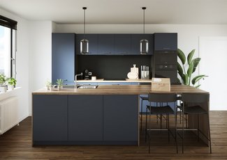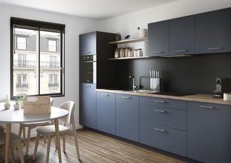 La cocina Velvet destaca por su diseño en L. Es minimalista, pero también refinada. Con todos los electrodomésticos necesarios – frigorífico, horno, lavavajillas, extractor y placa de cocción – ofrece una solución completa y sofisticada. Las líneas depuradas y los cuidados acabados de sus muebles ponen EL toque de diseño a tu casa.