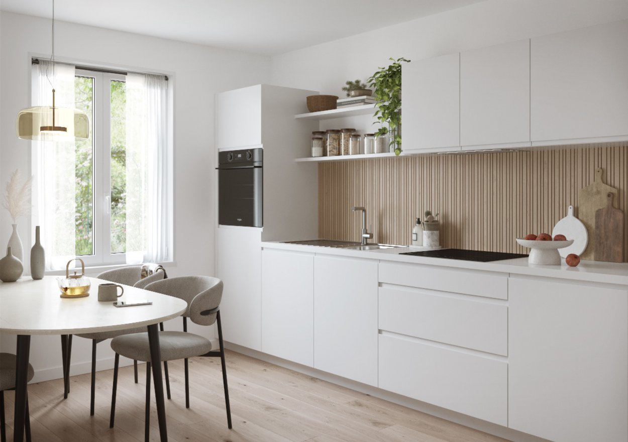 La cocina Modano te susurra al oído: «Respira, relájate». Con sus tonos claros y su suave madera, destila esa calma nórdica que tanto nos gusta. Sencilla y sin complicaciones: es el cocooning hecho cocina.